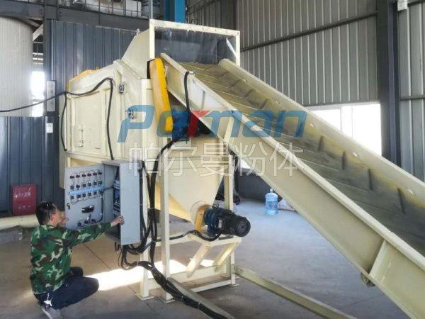 產品簡介: 雙軸機械粉碎機工作運轉中物料由加料系統均勻的送入粉碎室受到高速旋轉的粉碎盤的強烈沖擊,同時受到離心力的作用,與粉碎齒圈發生碰撞,受到剪切、摩擦、碰撞等多種綜合力的作用,使物料粉碎,被粉碎的物料隨氣流運動到分級區,通過變頻調節的分級輪,對粗細物料…